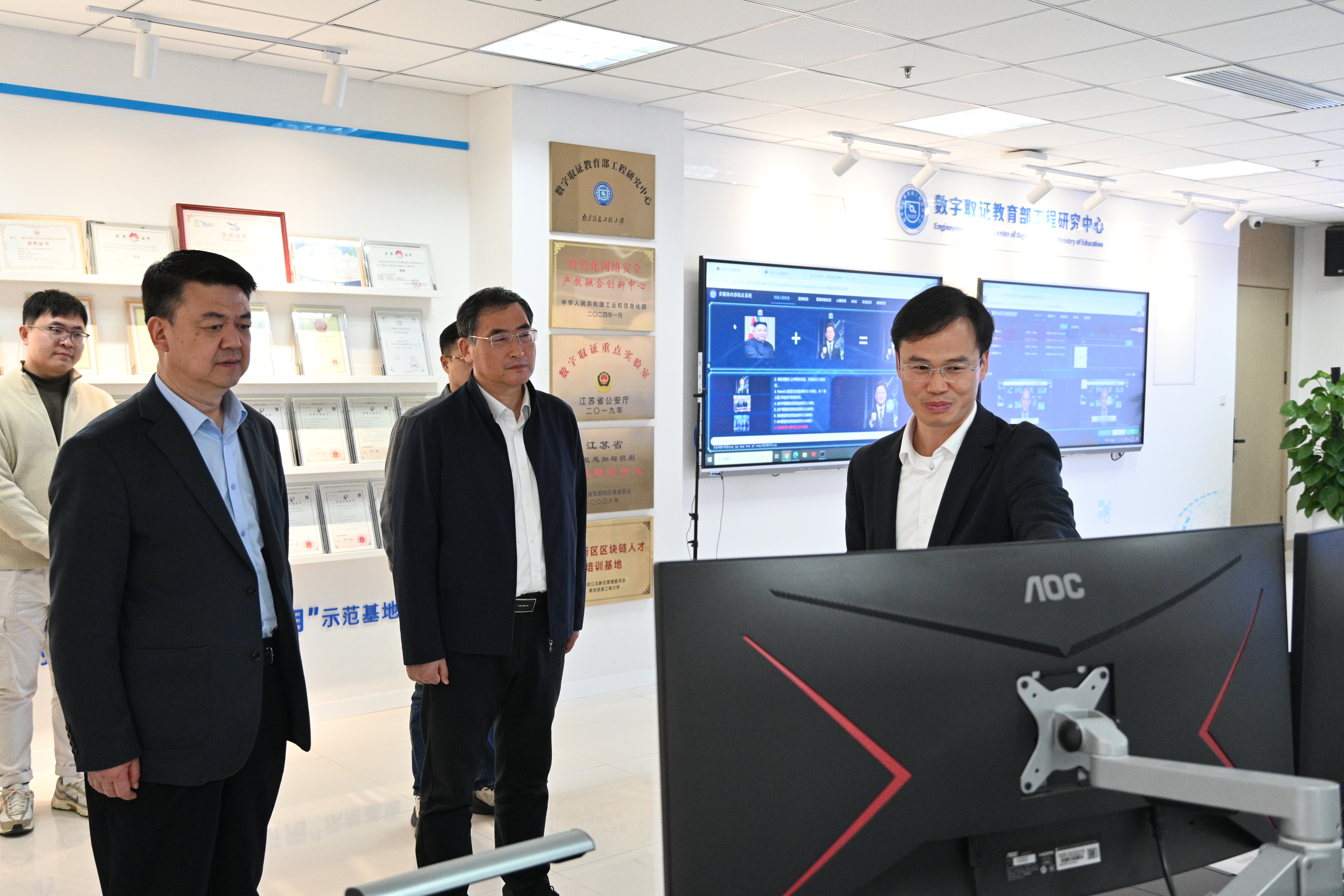 付章杰教授结合中心发展定位,向调研组介绍了取证中心作为全国首个经教育部批准成立的数字取证专业平台,在电子数据取证、智能媒体安全、区块链存证等核心领域的研发布局、技术突破,以及在有组织科研、成果转化、人才培养等方面的实践成效,详细阐述了中心如何服务国家数字安全战略需求。