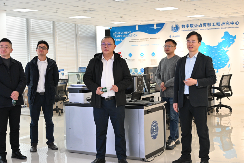 交流伊始,在付章杰主任及取证中心团队的陪同下,周益民院长一行参观了取证中心研发大厅。通过实地察看研发环境、观摩核心技术产品实操演示,来访嘉宾直观了解了取证中心在电子数据取证、智能媒体安全、区块链存证等领域的技术突破与应用场景,对中心的平台建设水平与科研创新实力给予充分肯定。
