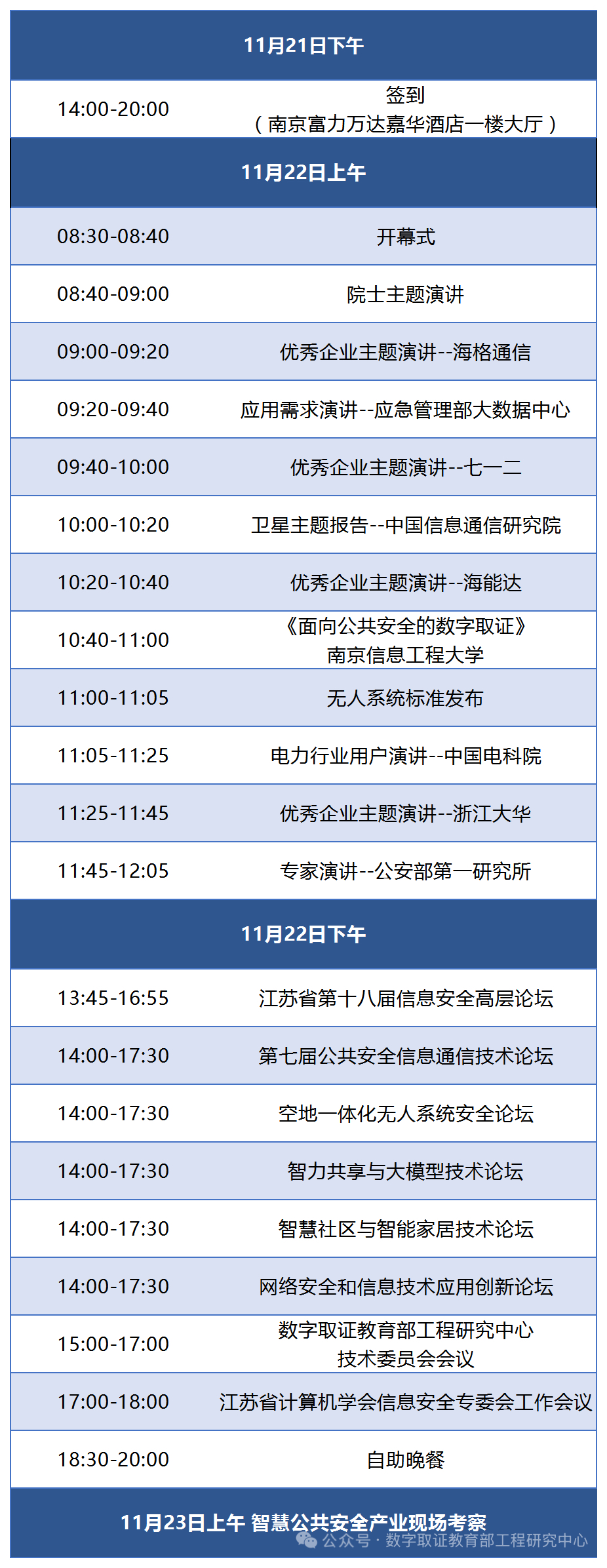 本次大会由南京信息工程大学,江苏省计算机学会,南京安全技术防范行业协会,中国通信学会公共通信专委会,中国人工智能产业发展联盟安防推进组,北京华通专业无线通信技术创新联盟,中国信息通信研究院城市宽带通信技术联盟主办,由数字取证教育部工程研究中心和江苏省计算机学会信息安全专委会协办,旨在搭建一个集学术交流、技术展示、产业对接于一体的高端平台,汇聚政产学研用各方力量,共同探讨智慧公共安全与数字取证领域的新挑战、新机遇与新趋势,加速技术成果向产业应用转化。