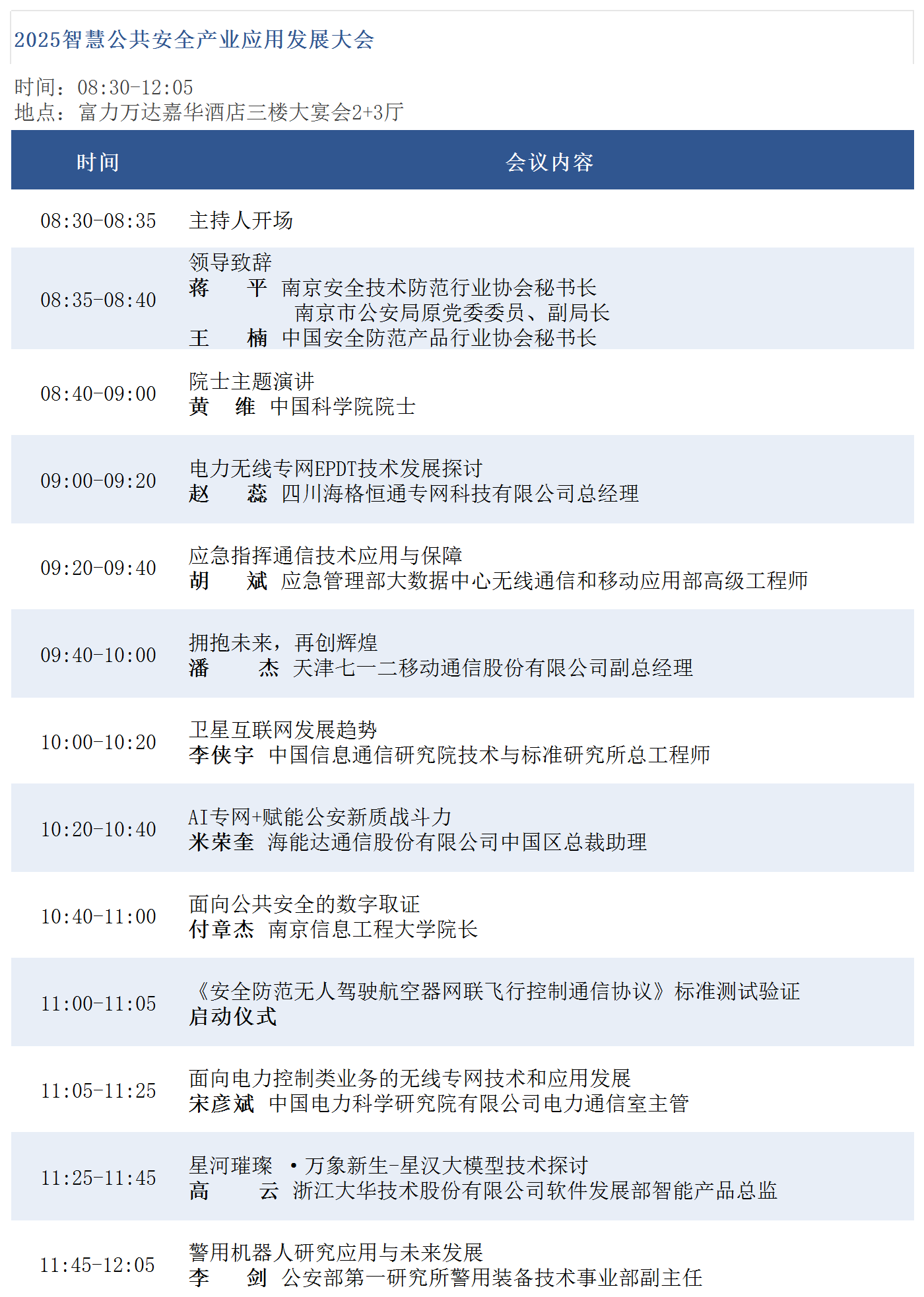 本次会议将采取主会场+主题论坛+技术成果展示的模式,邀请行业管理部门及应用单位有关领导、专家、技术人员,有关学会领导及专家,高校及 科研院所专家学者,相关领域从业企业负责人及技术骨干,公共安全和社会治理领域的用户代表等开展行业技术交流合作,展示和推广创新应用成果,合力推动行业技术进步与产业应用生态建设,提升公共安全水平。诚邀贵司领导莅临指导。会议安排如下: