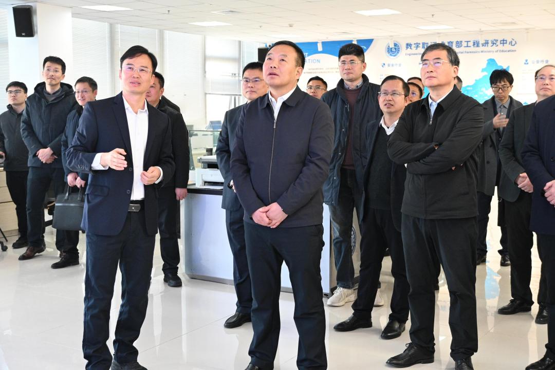 调研期间,张秀山、阚绪瑞一行考察了数字取证教育部工程研究中心。中心主任付章杰就平台建设、核心技术攻关及服务国家战略需求等方面做了详细汇报。